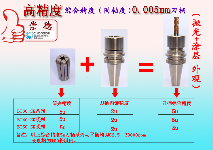1、刀柄7:24錐度精度≤AT3及部分標(biāo)準(zhǔn)尺寸均在德國(guó)制造的標(biāo)準(zhǔn)檢具上一次檢測(cè)完成。