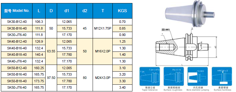 SK(DIN69871A)   鉆接桿刀柄